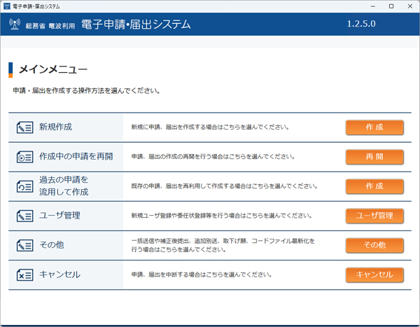 「総務省 電波利用 電子申請・届出システム」で手続きです。
