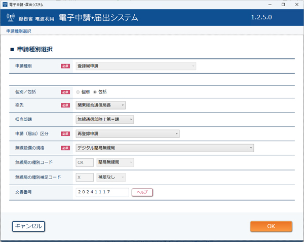 11月17日に行った、デジタル簡易無線の再登録申請。