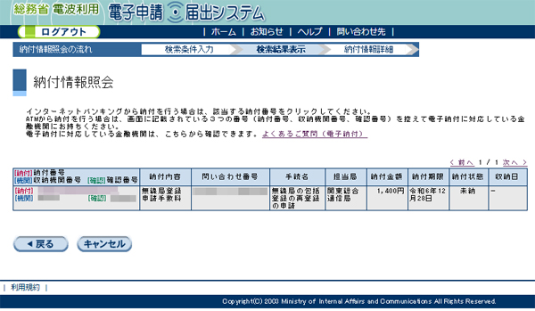 「総務省 電波利用 電子申請・届出システム」にPay-easyで支払うためのリンクがあり、そのリンクを辿っていくだけで「収納機関番号」「納付番号」「確認番号」を入力せずに支払いが行えました。