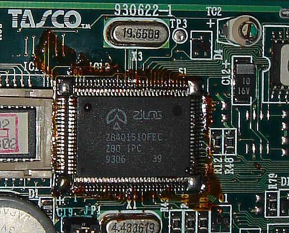 あと、なぜか、TNCのマイコンがザイログのZ80IPCに交換されています(中央のフラックスがたっぷりあるところ・・・)