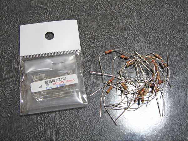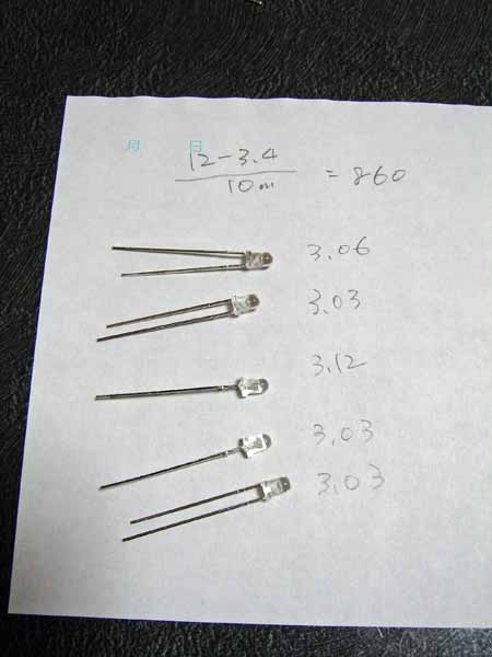 白色LEDは、φ3mmで、鈴喜デンキで10本800円の物を購入しました。