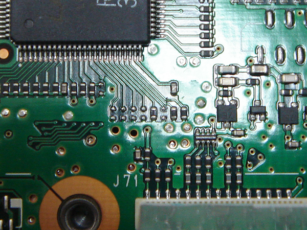 背の高い部品の場所だけ穴が空いていたりするので、当初から予定していたのではなく、後で追加になったように見えます。