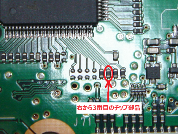 1005サイズなのと、片側のランドがGNDなので、外すのが意外と難儀しました。