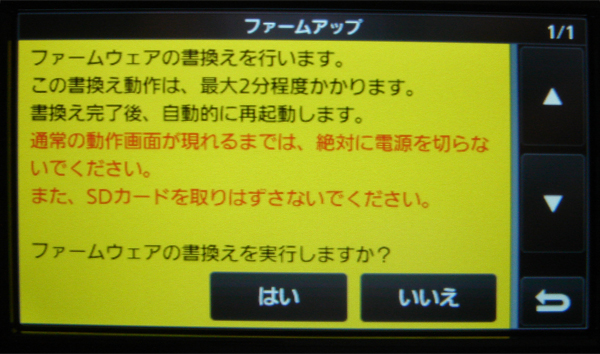 SDカードにダウンロードしたファームウェアを入れて実行です。