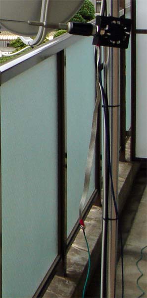 以前は、こんな風に、モービルホイップのグランド側にアース代わりの線材を接続し、ベランダに這わせていました(カウンターポイズのつもり)