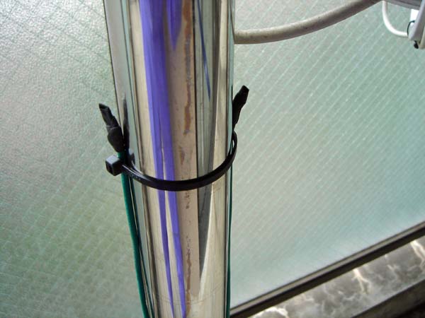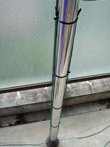 アンテナ基台と突っ張り棒は、こんな感じでつないでいます。