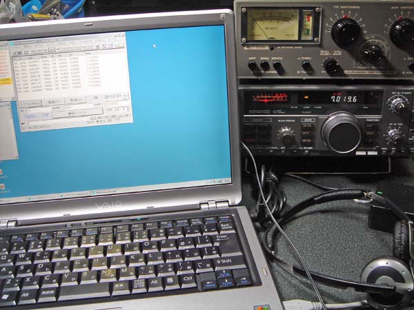 といっても、HF帯用のアンテナを降ろしてしまっているので(2009年10月18日のエントリー参照)、急遽、父親のシャックに無線機を持って行き、アンテナだけ借用しました。