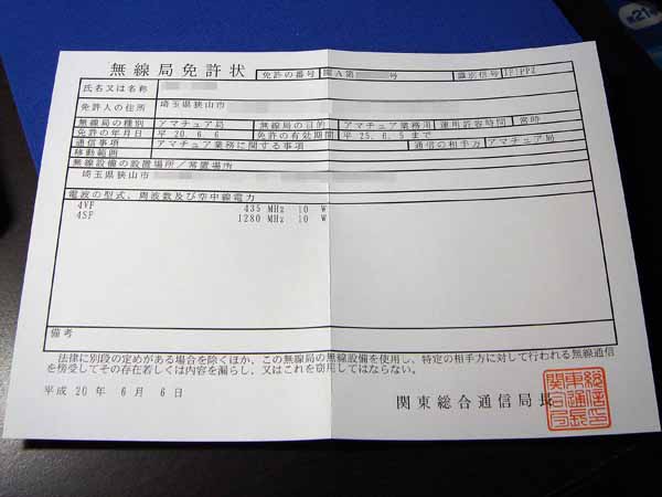 5日に審査終了になった、アマチュア無線局の開局申請。