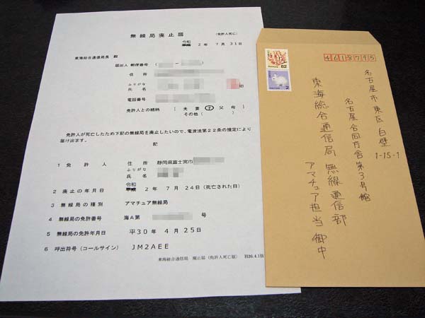 受理されて手続きが済めば、「総務省 電波利用ホームページ」の「無線局免許状等情報」からも検索できなくなると思います・・・。