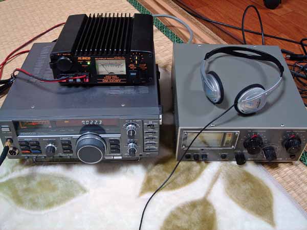 いつも通り、この設備で参加です(右側にあるのは、実家から持ってきた手動アンテナチューナ、クラニシのNT-535)