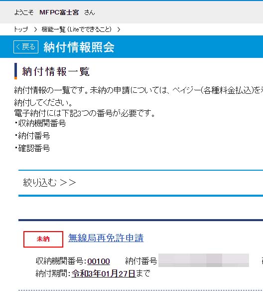 申請手数料の電子納付手続きの案内が来ていたので、Pay-easyで支払いを行いました。1,950円なり。