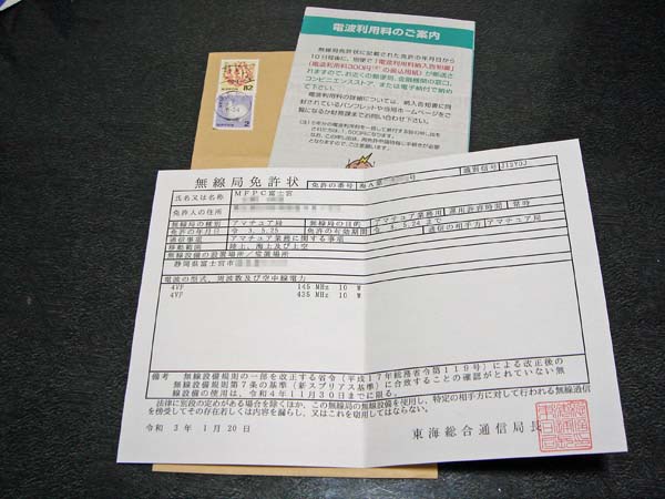 1月21日に審査が終了したと連絡のあった、JI2YOJの再免許申請。
