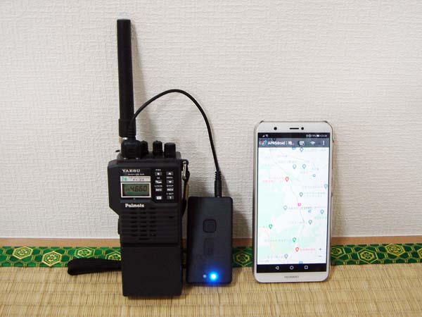 八重洲のFT-23にMobilinkdのTNC2、APRSdroidをインストールしたスマートフォン。