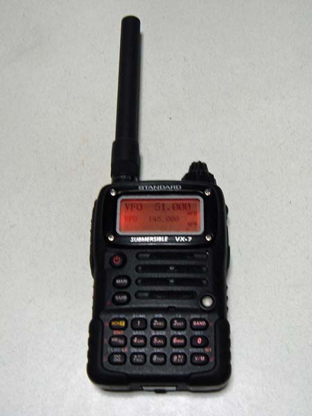 VX-7Bは50MHz帯も送信できるのですが、純正アンテナで50MHz帯を送信できるようにすると、そこそこ長くなるのです。