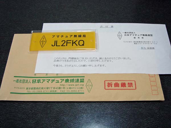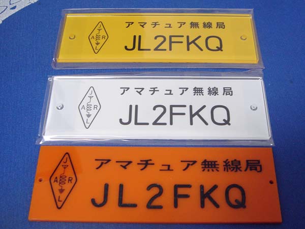 上から今回購入した1アマの門標、中央がJARLに再入会したときの門標、下が開局した頃(1987年~1988年頃)の門標。
