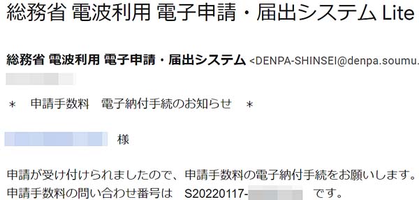 申請手数料の電子納付手続きの案内が来ていたので、Pay-easyで支払いを行いました。1,950円なり。