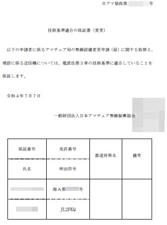 今日、JARDから「技術基準適合の保証書(変更)」が届きました。