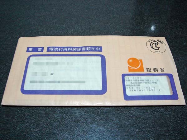 ちょっと前の話なのですが、「電波利用料納付のお願い」が届きました。