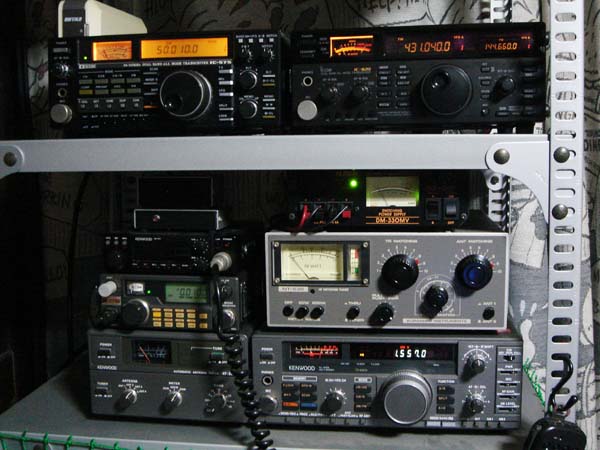 実家の無線機群はこんな感じ。50MHz帯を使える無線機が多いです。