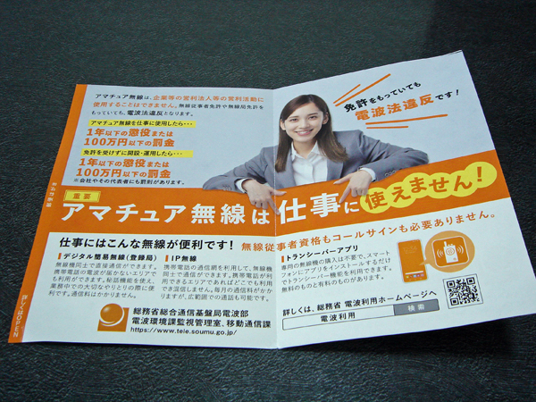 「アマチュア無線は仕事に使えません!」と書いてあります。