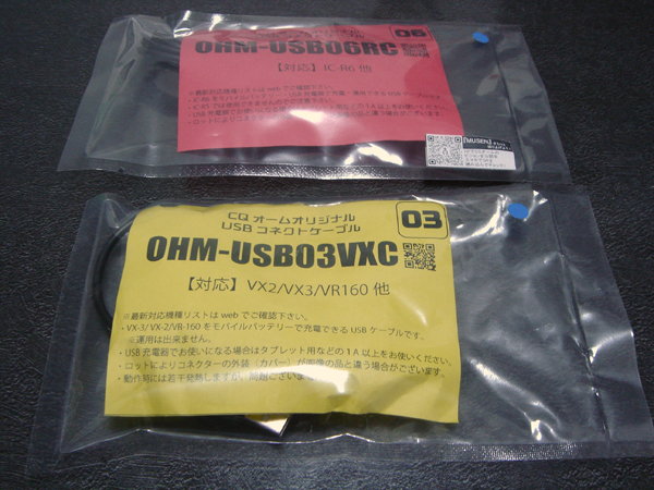 購入した、CQオームの「OHM-USB06RC」(上)、「OHM-USB03VXC」(下)。CQオームで購入。合計4,372円なり。