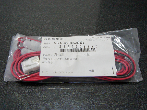 DCケーブルCAB-1258。CQオームで購入。本体が1,662円の、取り寄せ手数料・送料を入れて、合計で3,257円なり。