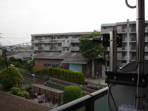 アンテナ自体は、コメットのCA-HVという、7/21/50/144MHzのアンテナに変わりはないのですが、少しだけ、ベランダから突き出すような形にしました。