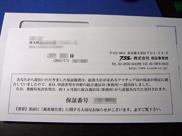 先日の、社団局開局の時は、通知書が来てから1週間強で届いているので、再来週の頭あたりに届くかな?
