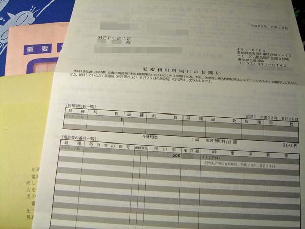 「電波利用料納付のお願い」が届きました。