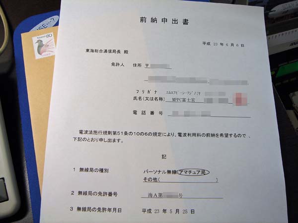 まずは、この無線機が使えるように、変更申請を行わないとね。
