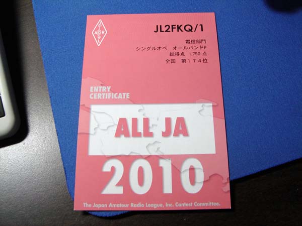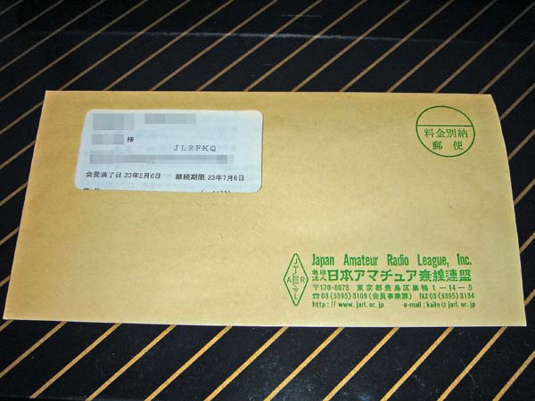 ちょっと前の話ですが、JARLからQSLカードが届きました。