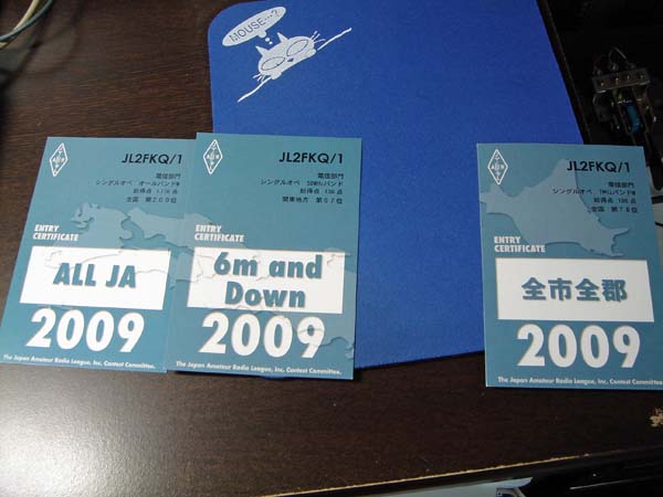 以前届いた、ALL JAコンテストと6m AND DOWNコンテストの参加賞と合わせると、こんな感じになります。