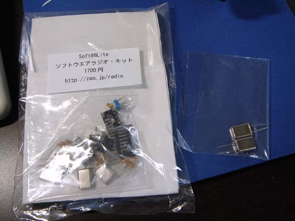ハムスクウェアのソフトウェアラジオ・キットSoft66Liteと、7.010MHzの水晶2ヶ。送料込みの合計が3,000円なり。