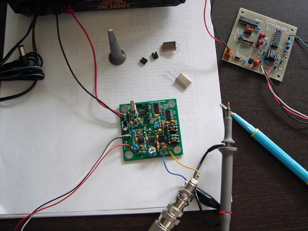 動作確認中。昨日購入したオシロも活躍してます(笑)