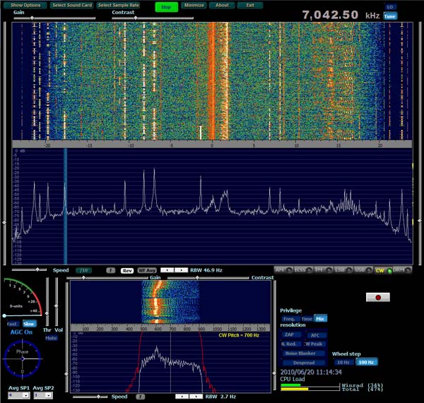 Winradというソフトウェアを使い、11時頃の7MHz帯を受信してみました。