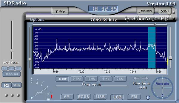 先日組み立てた、「ソフトウェア・ラジオ実験基板」にアンテナをつなげ、7MHz帯を聞いてみました。