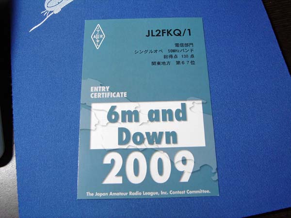その、6m AND DOWNコンテストの参加証が届きました!