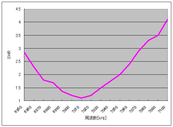 HF帯のアンテナで、ここまでSWRを詰めたのは初めてだったので、ちょっと感激してしまいました(笑)