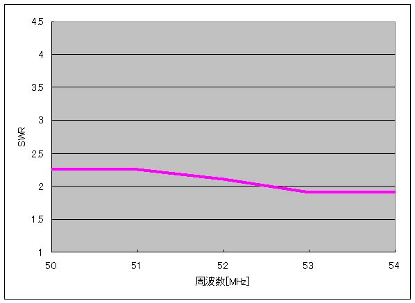 50MHz帯。50MHz帯は、同調点が55MHzくらいにあったのですが、他のバンドのことも考え、調整せずにこのままにしています。