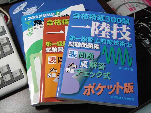 「1・2陸技受験教室2 無線工学A」、「合格精選300題 第一級陸上無線技術士試験問題集」と「合格精選320題 第一級陸上無線技術士試験問題集 第2集」。Amazon.co.jpで購入。合計8,610円なり。