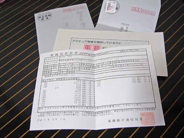 昨日、総務省東海総合通信局に電話をして、修正をお願いした免許状が到着しました!