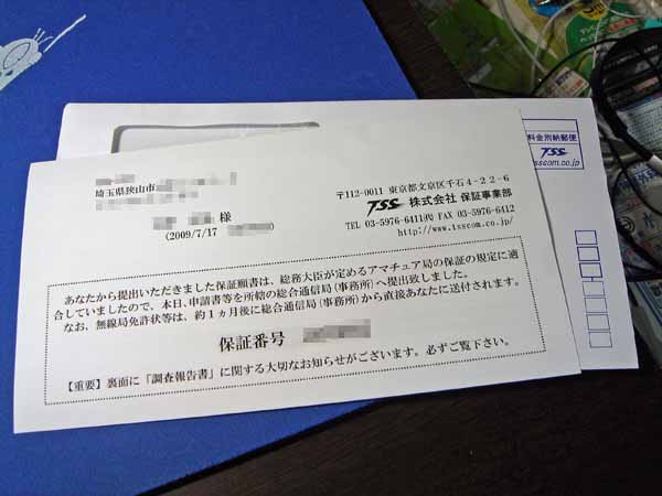で、14日の電話で問題事項が解決し、書類を訂正してもらって、7月17日付けで、TSSから総合通信局へ書類が送られたようです。