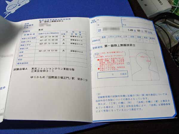 やっぱり、アマチュア無線の受験票とは違うのね。