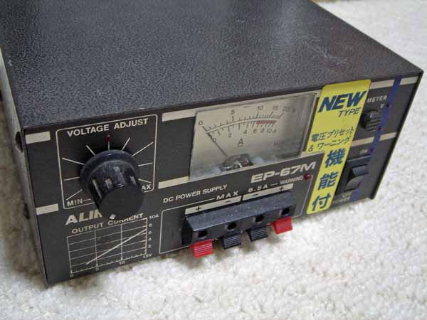 そのときに使っていたのは、上の写真の電源と違う、アルインコのEP-67Mという、最大6.5A出力の電源を使用していたのです。