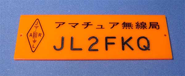 20年前の開局時にJARLに入会し、そのときもらった門標なので、電話級の色、オレンジ色の門標です。
