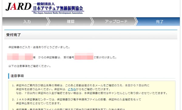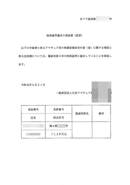 で、一部の無線機はJARL登録機種や旧スプリアス機器であり、また附属装置があるので、JARDで保証認定手続きを行いました。
