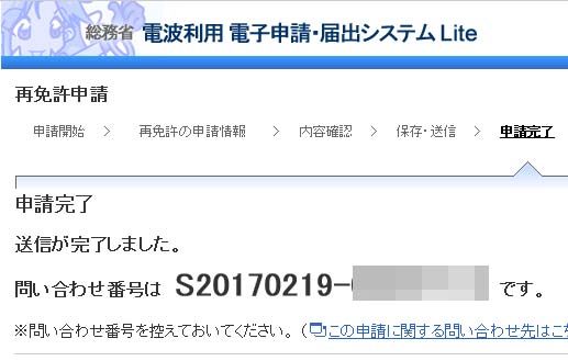 今回も、「電波利用 電子申請・届出システム Lite」を使用し、再免許申請です。