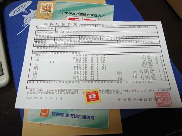 JL2FKQの免許が今年の6月で切れるので、再免許申請を行いました。