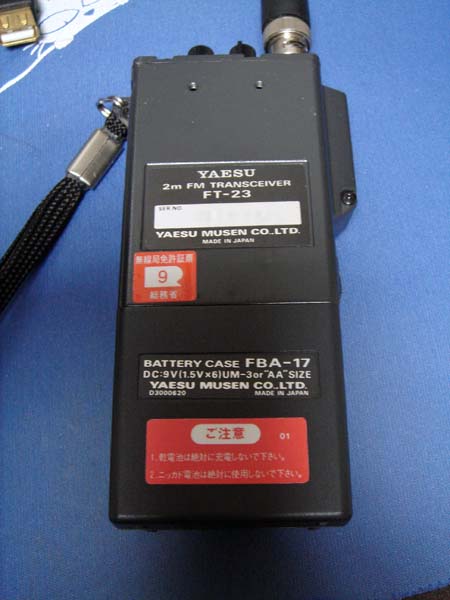 無線局免許証票は、さっそく、FT-23に貼り付けますよ。
