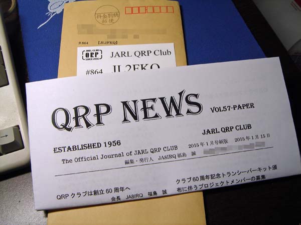 会員になっているJARL QRP クラブから、紙の会報が届きました(WEB版は毎月発行されている)